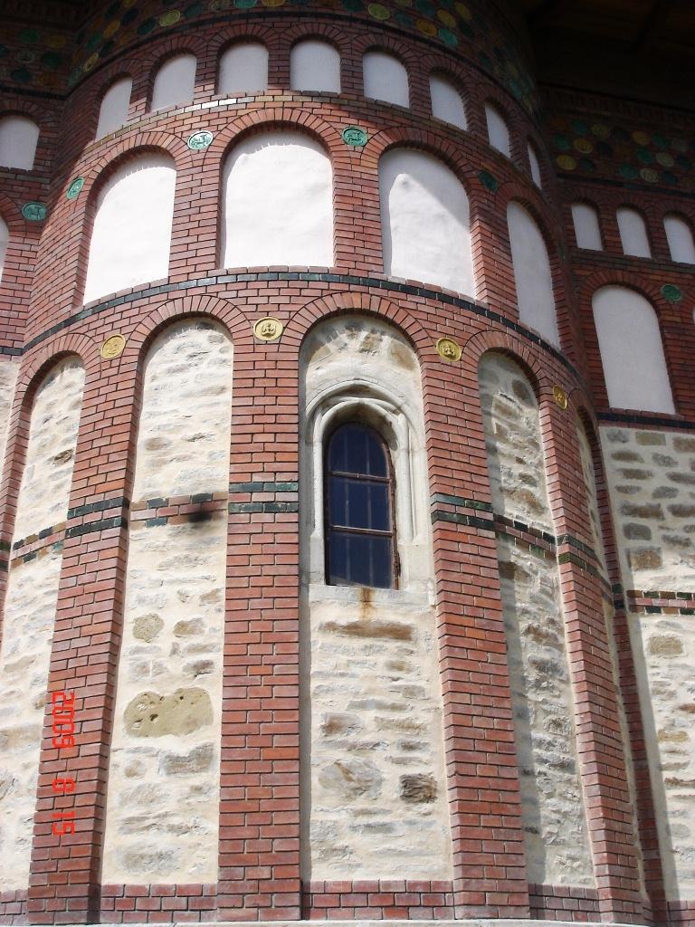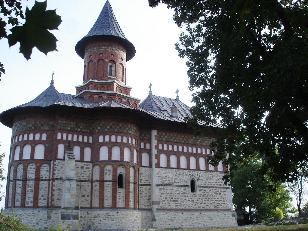 Biserica a fost restaurată de câteva ori între anii 1896-1921 şi îşi păstrează în întregime formele originale, înfăţişându-se ca un monument bogat decorat, ce încântă privirile. A fost construită în plan triconic, cu turlă pe pronaus şi acoperiş fragmentat, având supralărgit pronaosul faţă de naos. Este construită din gresie cenuşie, uşor cioplită, iar colţurile şi contraforturile din piatră de talie.